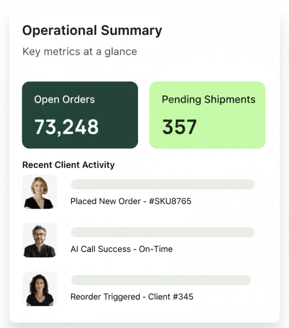 Eliminate manual order entry, stop picking errors, and deploy a 24/7 AI Sales Rep that never sleeps and never misses a lead.